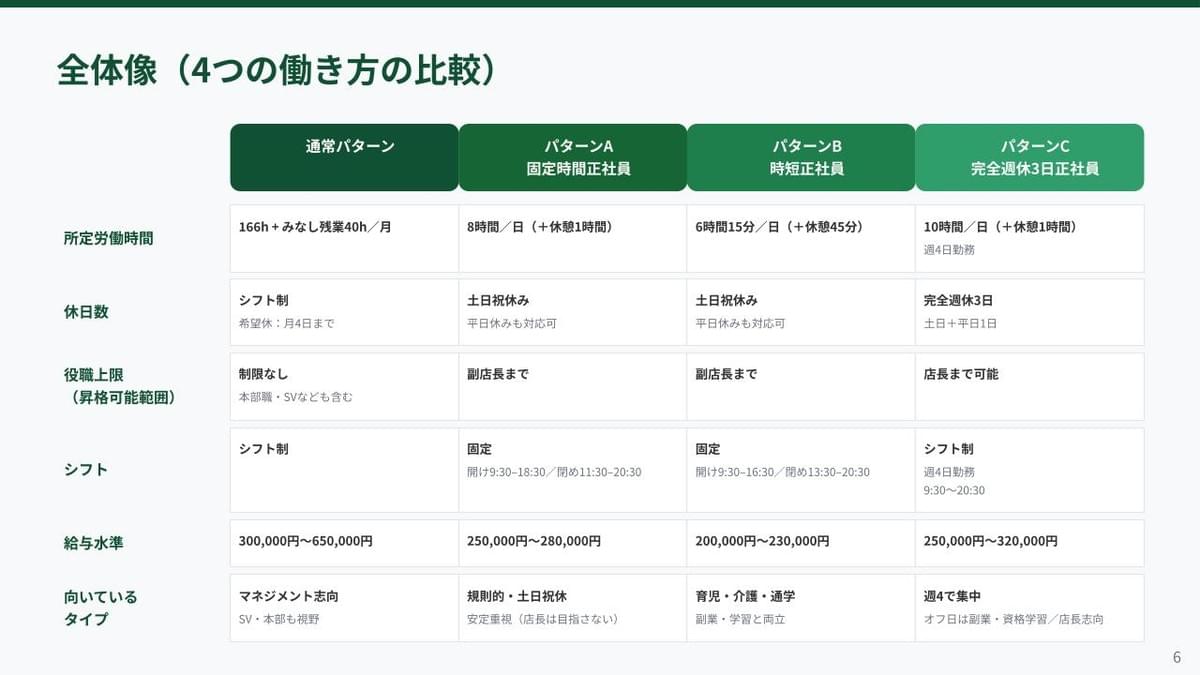 本制度では、個々のライフスタイルや志向に合わせて勤務形態を選択できる仕組みを整え、それぞれが長く安心して活躍できる環境づくりを目指します。
